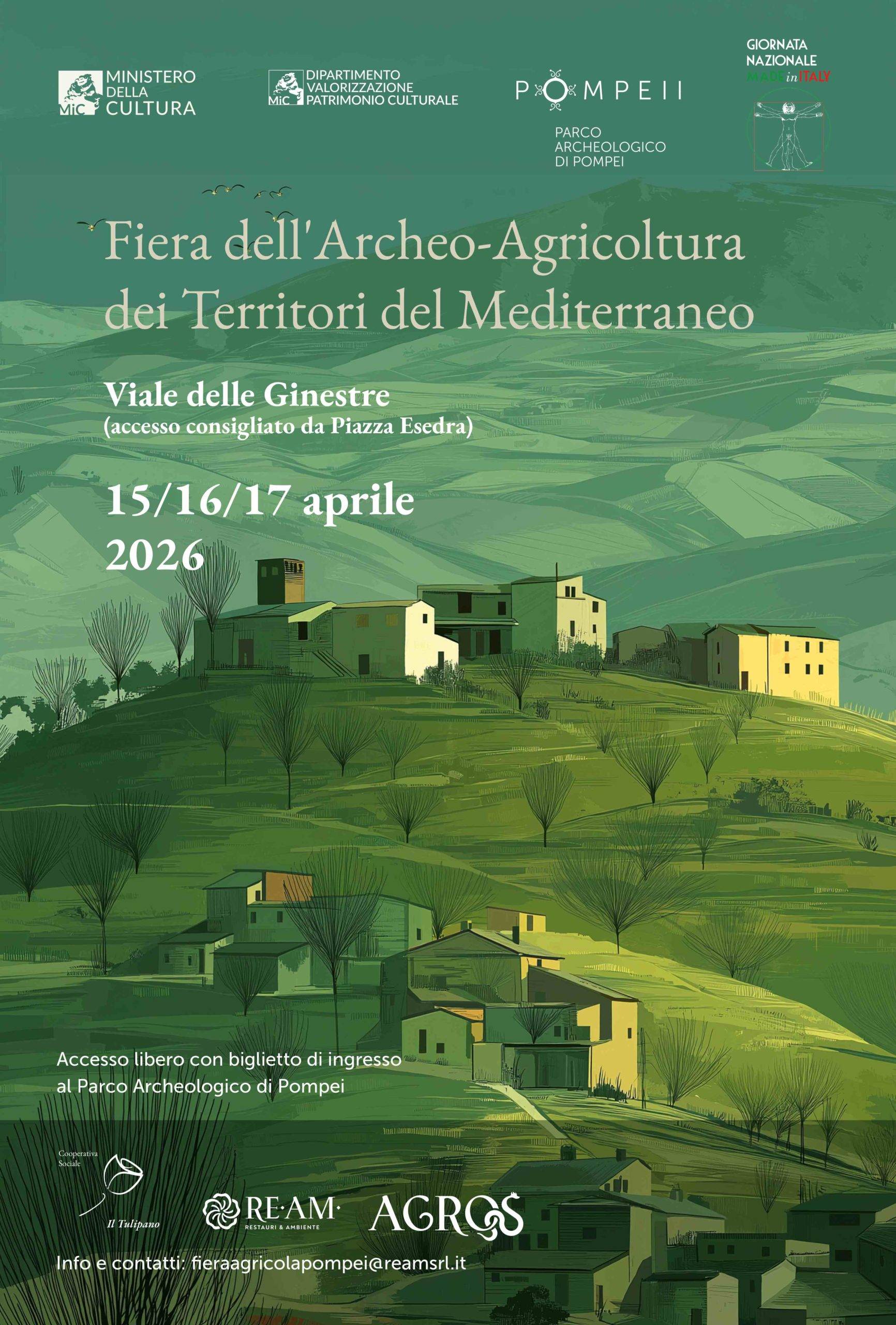 Il Parco Archeologico di Pompei diventa sede della Fiera Archeo‑Agricola dei Territori del Mediterraneo, in programma dal 15 al 17 aprile 2026, in occasione della Giornata Nazionale del Made in Italy. Un evento che intreccia storia millenaria, saperi agricoli e innovazione sostenibile.