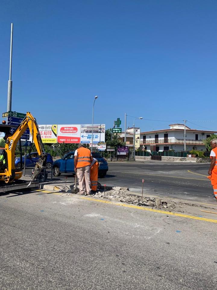 Sono iniziati questa mattina i lavori per la realizzazione di una rotatoria all’incrocio tra via Bottaro e via S. Antonio, snodo cruciale per la viabilità al confine tra Torre Annunziata e Pompei, a pochi passi dal supermercato ex Auchan.