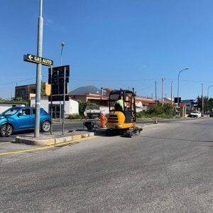 Nei giorni scorsi era stata già modificata la segnaletica orizzontale, con le strisce gialle a segnalare pericolo e lavori in corso. Oggi operai e ruspe in azione per modificare l’assetto di uno degli incroci più trafficati e pericolosi della zona.