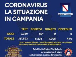 Coronavirus: sono 46 i nuovi contagiati in Campania, 5 provenivano dall’estero