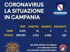 Sale ancora il numero dei contagiati in Campania: 10 nuovi positivi