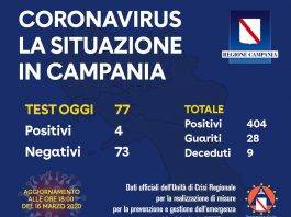 Coronavirus, sale a 404 il numero di casi positivi in Campania