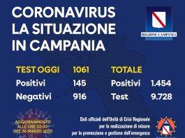 Aggiornamento Coronavirus in Campania: 145 nuovi positivi oggi