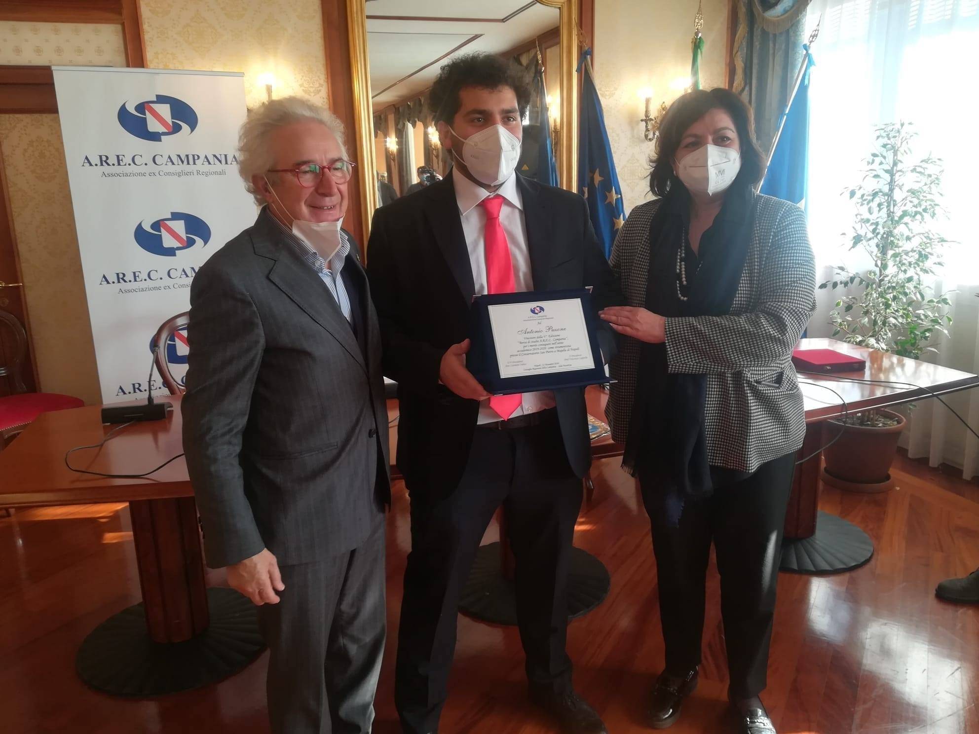 Premiati questa mattina, nella sala Nassirija del Consiglio Regionale della Campania, quattro studenti del conservatorio “San Pietro a Majella”, che si sono distinti nel loro percorso di studi. I ragazzi hanno ricevuto una borsa di studio. Alla premiazione erano presenti anche il Presidente del consiglio Gennaro Oliviaro, il presidente dell’Arec Vincenzo Cappello e la consigliera regionale Loredana Raia, che ha commentato l’evento sui social:
