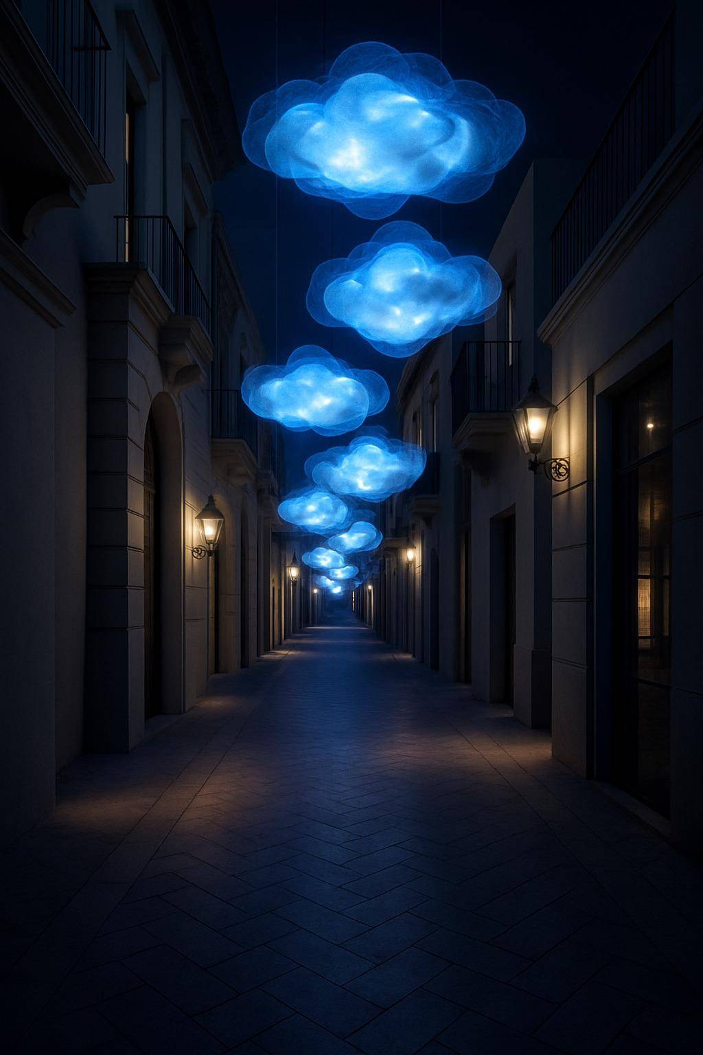 È in questo contesto che prende forma “Nebula – Le Nuvole di Boscoreale”, un’installazione aerea composta da grandi nuvole sospese che accompagneranno i passanti lungo la storica “via del Popolo”. Leggere, fluttuanti e poetiche, queste forme evocano i vapori antichi del Vesuvio e i cieli mutevoli dell’area pompeiana, trasformandosi in un segno contemporaneo capace di unire memoria e futuro. Un sistema di illuminazione dinamica renderà l’opera viva e mutevole, in dialogo costante con i ritmi della città.