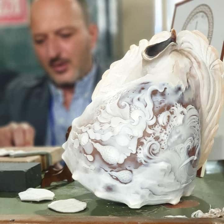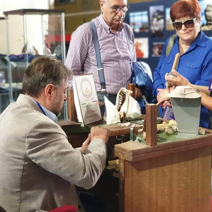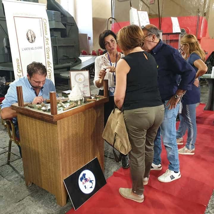 Ospiti del Padiglione ACAI, Associazione Cristiana Artigiani Italiani, gli Incisori Torresi del Cammeo raggruppati dall’ Associazione Culturale Cameo Art Torre del Greco hanno reso viva dimostrazione e testimonianza della lavorazione artigianale del cammeo, attraverso l’ allestimento di una postazione dinamica interattiva e un’ esposizione delle opere realizzate su cammeo.