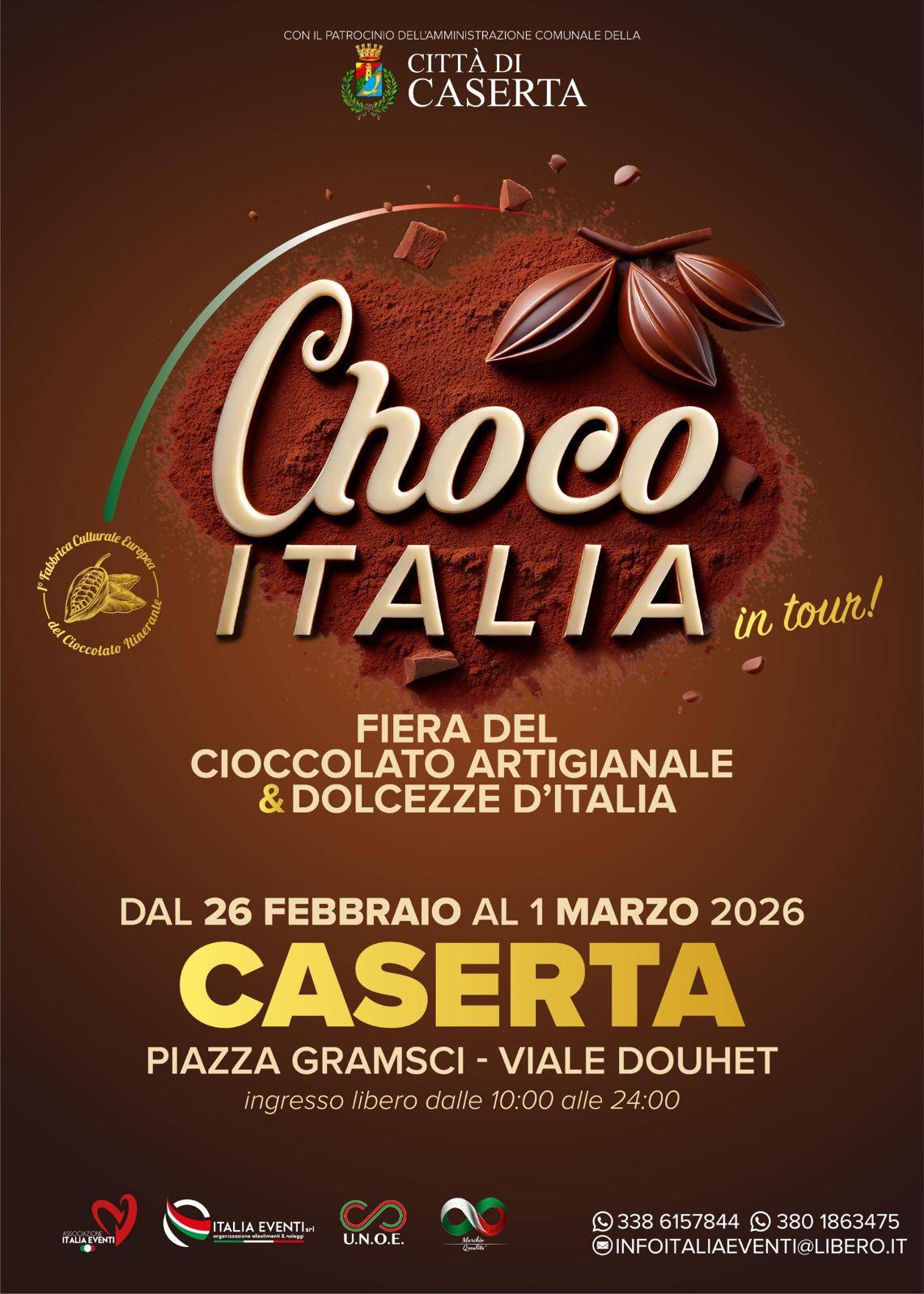 La fiera del cioccolato artigianale e delle dolcezze italiane si svolgerà da giovedì 26 a domenica 1° marzo tra Piazza Gramsci e Viale Douhet, a pochi passi dalla monumentale Reggia di Caserta.