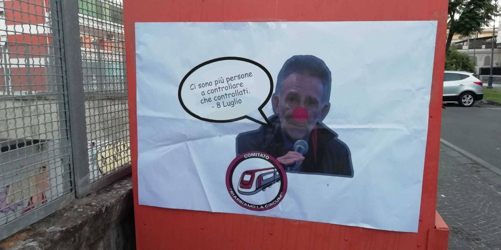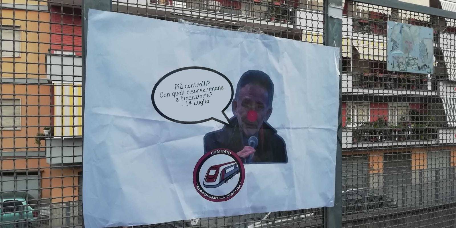 Questa mattina, presso la stazione di Portici Bellavista, dove una settimana fa si è verificata l’ennesima aggressione ad un capotreno della Circumvesuviana, sono apparsi degli striscioni, a firma del Comitato Riaprire la Circum, raffiguranti il presidente dell’EAV Umberto De Gregorio, mentre effettua dichiarazioni che, a dire del Comitato, non corrisponderebbero alla realtà.