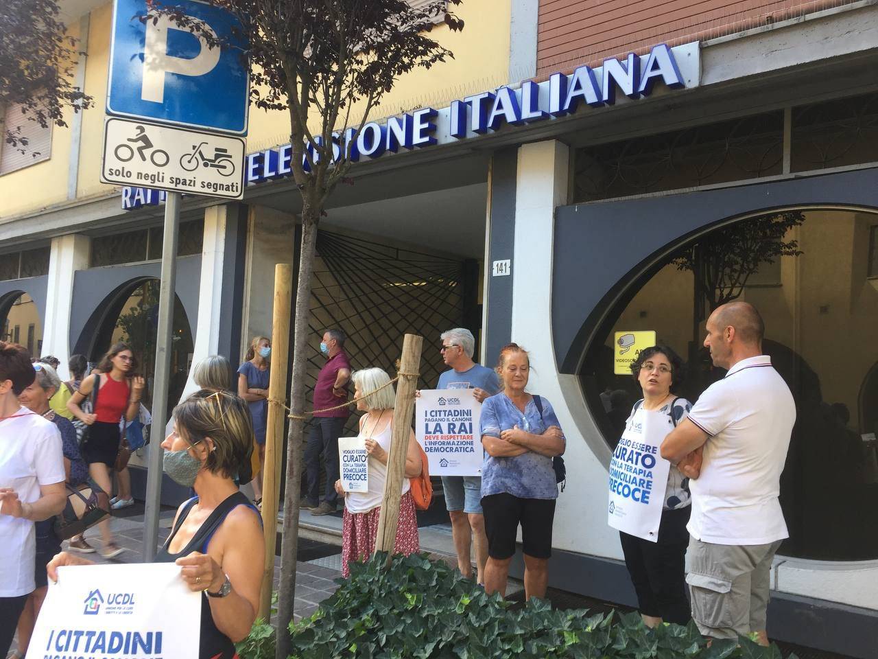 Comitato Cure Domiciliari Covid, protesta davanti alle sedi regionali RAI.