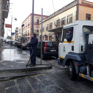 Prosegue l’attività di sanificazione delle strade a Torre del Greco. Dallo scorso 17 marzo i mezzi sono in azione su tutto il territorio e il Comune precisa che ogni settimana sarà assicurata la copertura dell’intera estensione della città, appositamente suddivisa in sette zone di azione per l’espletamento del servizio totalmente “in house”, ovvero, a carico dell’Ente comunale. Di seguito le immagini della sanificazione avvenuta nelle scorse ore.
