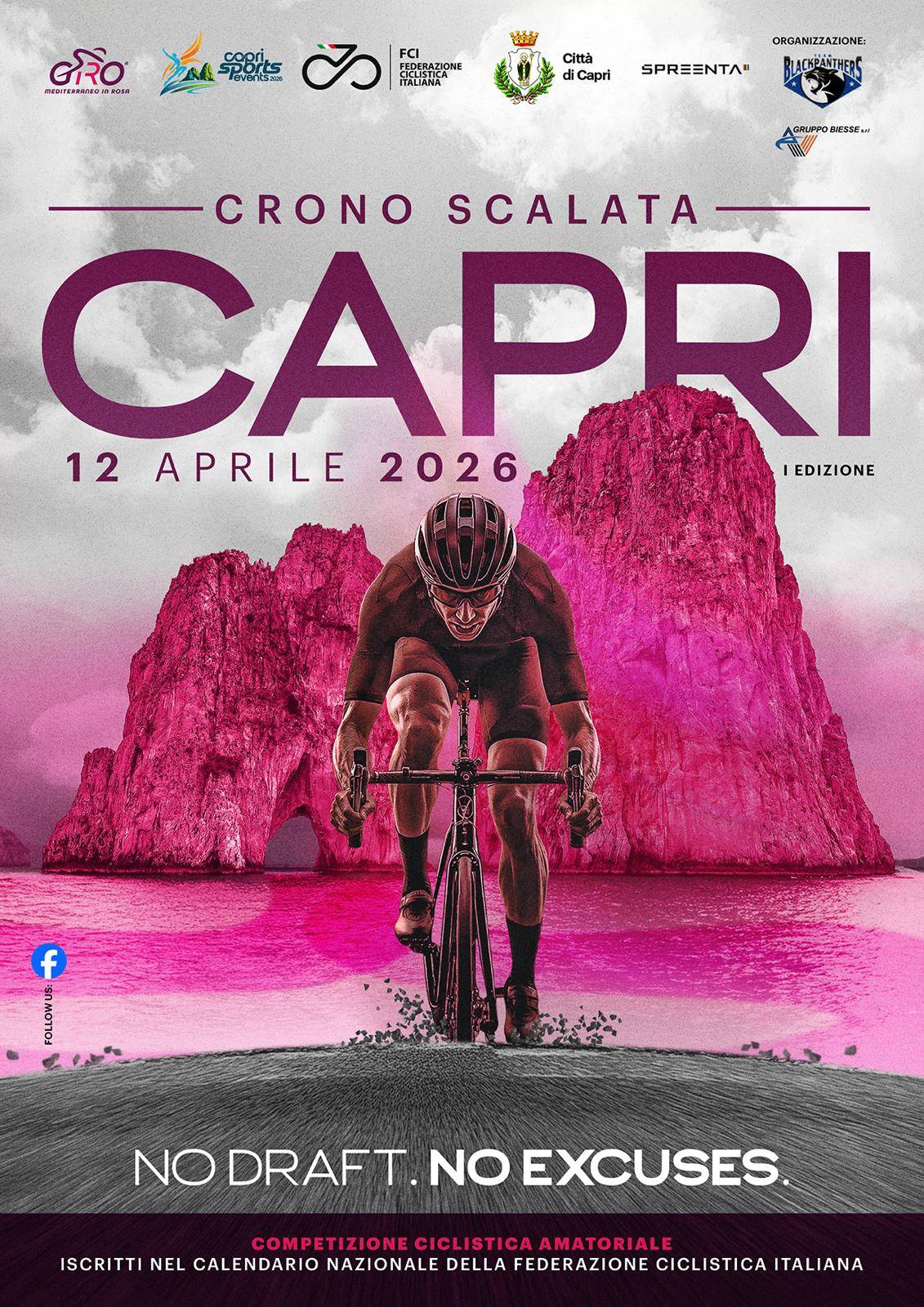 Alla fine, è stato deciso, vista la presenza anche di giovanissimi ciclisti al via, di derogare ai limiti inizialmente imposti e di consentire la partecipazione a tutti coloro i quali hanno formalizzato l’iscrizione in tempo utile. Saranno loro, dunque, a sfidarsi domenica 12 aprile lungo un percorso che proporrà come sfondo alcune delle bellezze più caratteristiche di Capri: partenza nel primo pomeriggio da Marina Piccola, lunghezza di 2,2 chilometri con un dislivello di 120 metri, arrivo nella zona della piazzetta, dove sempre domenica, ma alle 11, saranno presentate maglie e protagonisti della manifestazione.