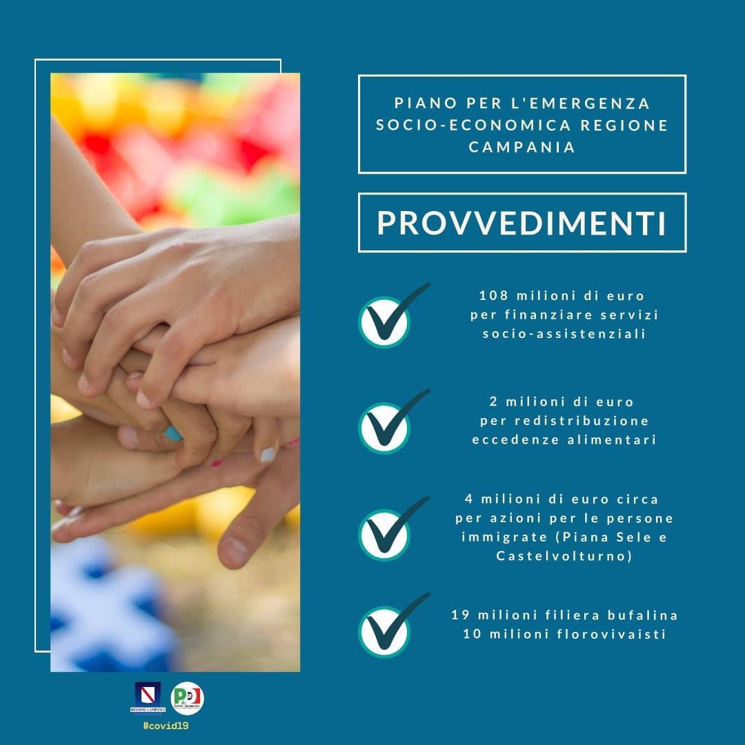 Per la grande emergenza sociale ed economica come quella consequenziale alla pandemia da Coronavirus, la Regione Campania mette in campo più di 900 milioni di euro.