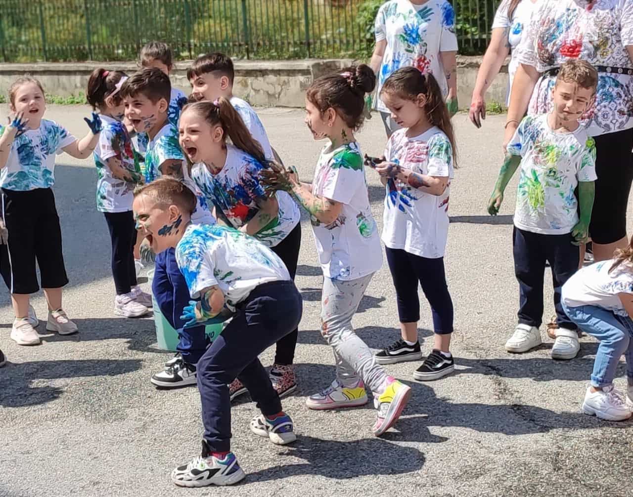 Il primo step è stato un gioco con i colori, dove i bambini e i genitori dipingevano le magliette con le loro impronte.