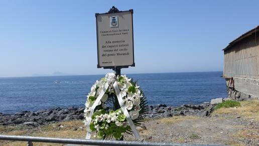 Dopo la deposizione di una corona di fiori bianchi, in ricordo delle quattro giovani vittime, alla base della lapide posta su corso Garibaldi, alle ore 11.36, c’è stato il concomitante suono di sirene di una motovedetta della Guardia Costiera, oltre che delle auto della Polizia e della Guardia di Finanza.