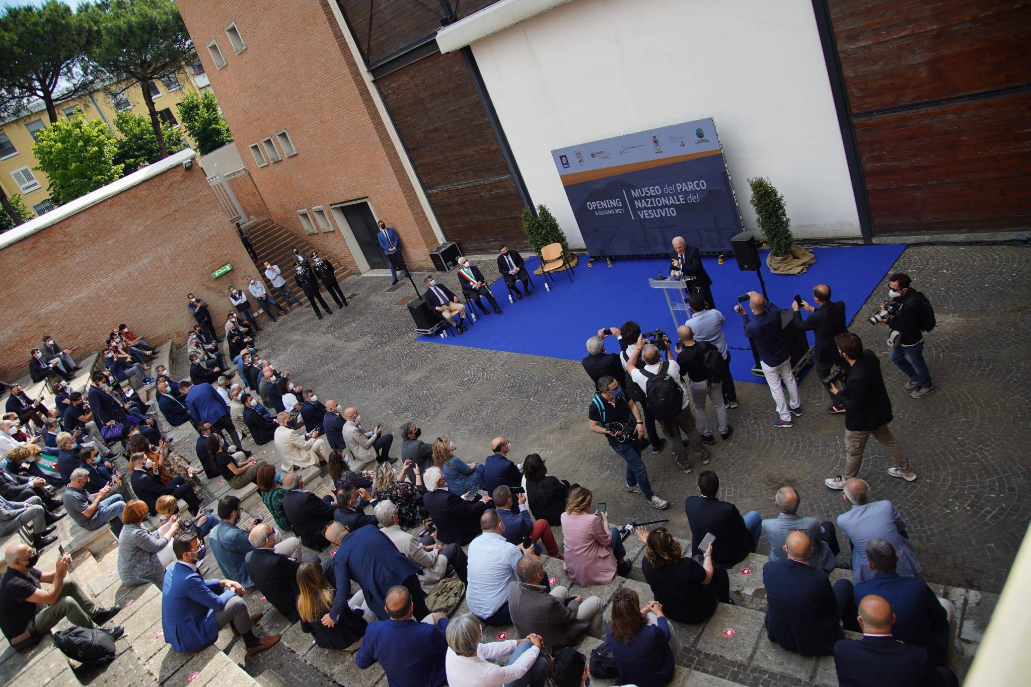 «Il Museo del Parco Nazionale del Vesuvio, insieme al MAV, altro gioiello del territorio, deve essere uno dei punti di forza del rilancio turistico e culturale della nostra regione – dichiara il Presidente della Regione Campania Vincenzo De Luca –. Nell’arco di 10 km abbiamo la concentrazione più alta al mondo di beni archeologici. Se tutto quello che abbiamo qui fosse stato in Francia o in Germania avrebbero costruito qualcosa di inimmaginabile tra Pompei, Ercolano, Boscoreale, Torre del Greco, Portici. Un po’ più su, Campi Flegrei, Baia, la città sommersa. Abbiamo cose uniche al mondo che non siamo stati capaci di valorizzare fino in fondo. Lo sviluppo del settore “turismo” non è né semplice, né veloce e prevede che tanti fattori confluiscano sull’ottima riuscita dell’impresa. Con il presidente dell’EAV Umberto De Gregorio stiamo lavorando alla realizzazione di una funivia sul Vesuvio. Altra idea alla quale pensiamo di lavorare è la realizzazione di un parco floreale, altro elemento di attrazione turistica nell’area vesuviana. Stiamo cercando di utilizzare la vecchia rete ferroviaria dismessa per realizzare un grande parco urbano che arriva da Pompei al mare, può essere una grande pista ciclabile, che può diventare un luogo per eventi sportivi internazionali. Stiamo lavorando per la messa a punto di un piano di sicurezza: tra Campi Flegrei e area vesuviana abbiamo un territorio estremamente delicato sotto l’aspetto sismico. Altro obiettivo: la depurazione del mare del Golfo di Napoli. Il museo che inauguriamo questa mattina non è un intervento isolato; è un pezzo di un grande piano di rilancio culturale, turistico, ambientale, economico di tutta l’area vesuviana».