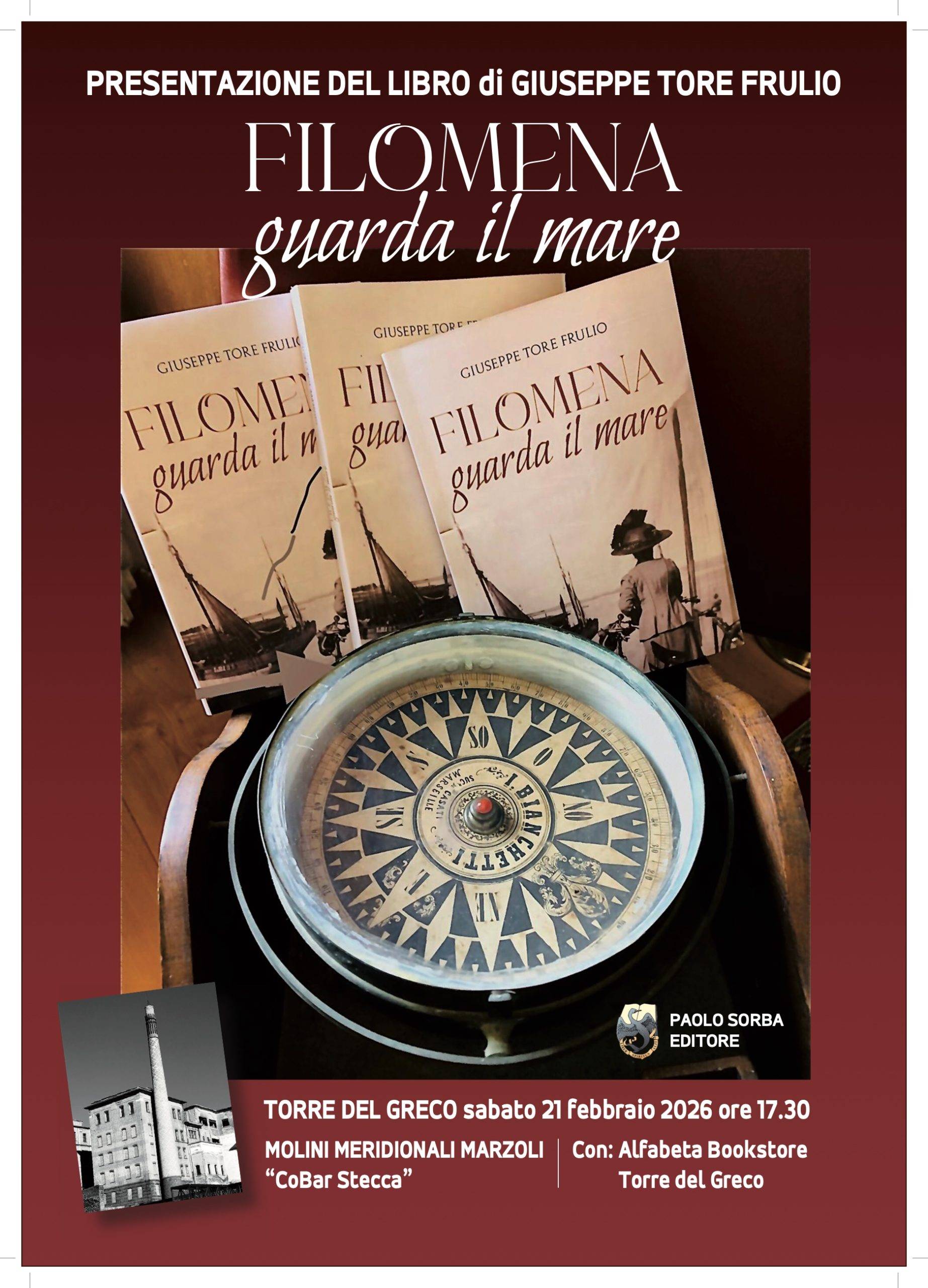 Avrà luogo sabato 21 febbraio alle ora 17.30 al CoBar dei locali Stecca, presso la sede degli ex Molini Meridionali Marzoli, la presentazione del libro dell’architetto ed urbanista Giuseppe Tore Frulio “Filomena guarda il mare”.