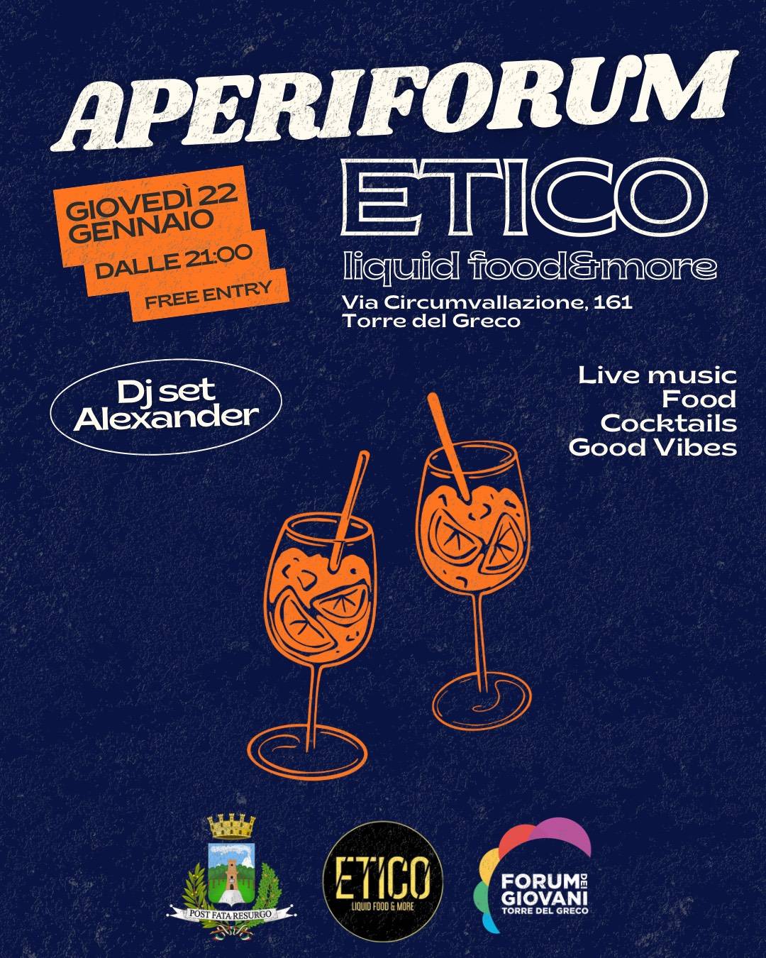 «Con AperiForum avviamo un progetto che nasce dai giovani e parla alla città. Un’iniziativa pensata per rimettere in moto Torre del Greco, riportando persone, idee e relazioni nei suoi spazi, sostenendo allo stesso tempo l’economia locale. Non si tratta di semplici aperitivi, ma di momenti di partecipazione e identità: ogni locale diventa protagonista con una proposta unica, capace di incontrare i gusti di tutti i torresi» – spiegano Giorgio Cropano e Cristiano Borriello, coordinatori del progetto. «L’AperiForum nasce anche con l’obiettivo di valorizzare il ruolo che le attività di somministrazione svolgono nel tessuto socio-economico di Torre del Greco. Bar e locali non sono soltanto luoghi di consumo, ma presìdi di socialità, spesso il primo punto di incontro per centinaia di giovani e famiglie. Le attività che hanno aderito all’avviso pubblico rappresentano una parte dell’economia locale, fatta di imprenditoria, occupazione e radicamento sul territorio» – sottolineano Alfredo Izzo e Ciro Cutolo, componenti dell’ufficio di presidenza del Forum.