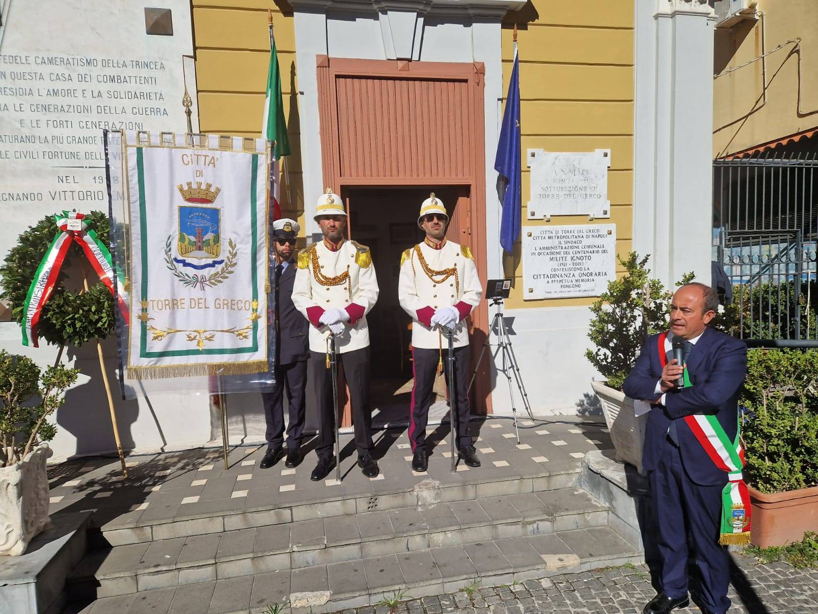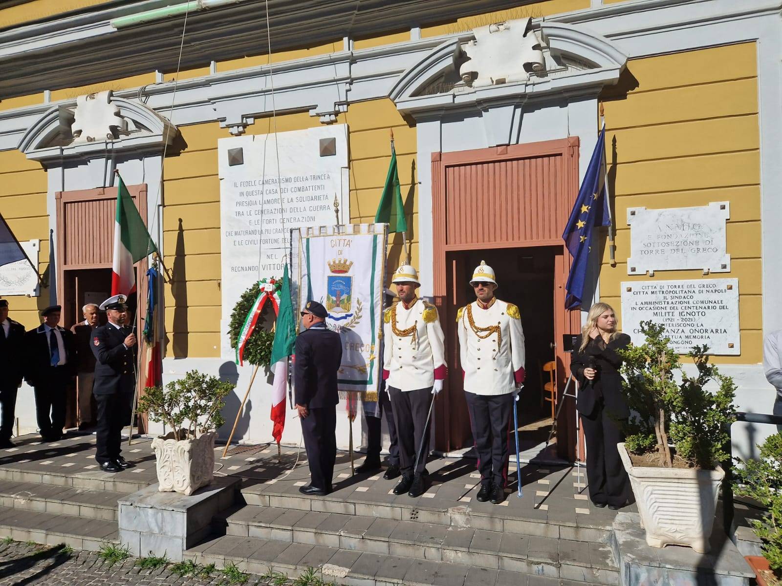 “La città di Torre del Greco è grata alle forze armate”. A pronunciare queste parole è stato il vicesindaco Michele Polese, intervenuto questa mattina, martedì 4 novembre, alla cerimonia organizzata all’esterno della casa del combattente, nella zona della villa comunale Ciaravolo di corso Vittorio Emanuele, in occasione della Giornata dell’unità nazionale e delle forze armate.