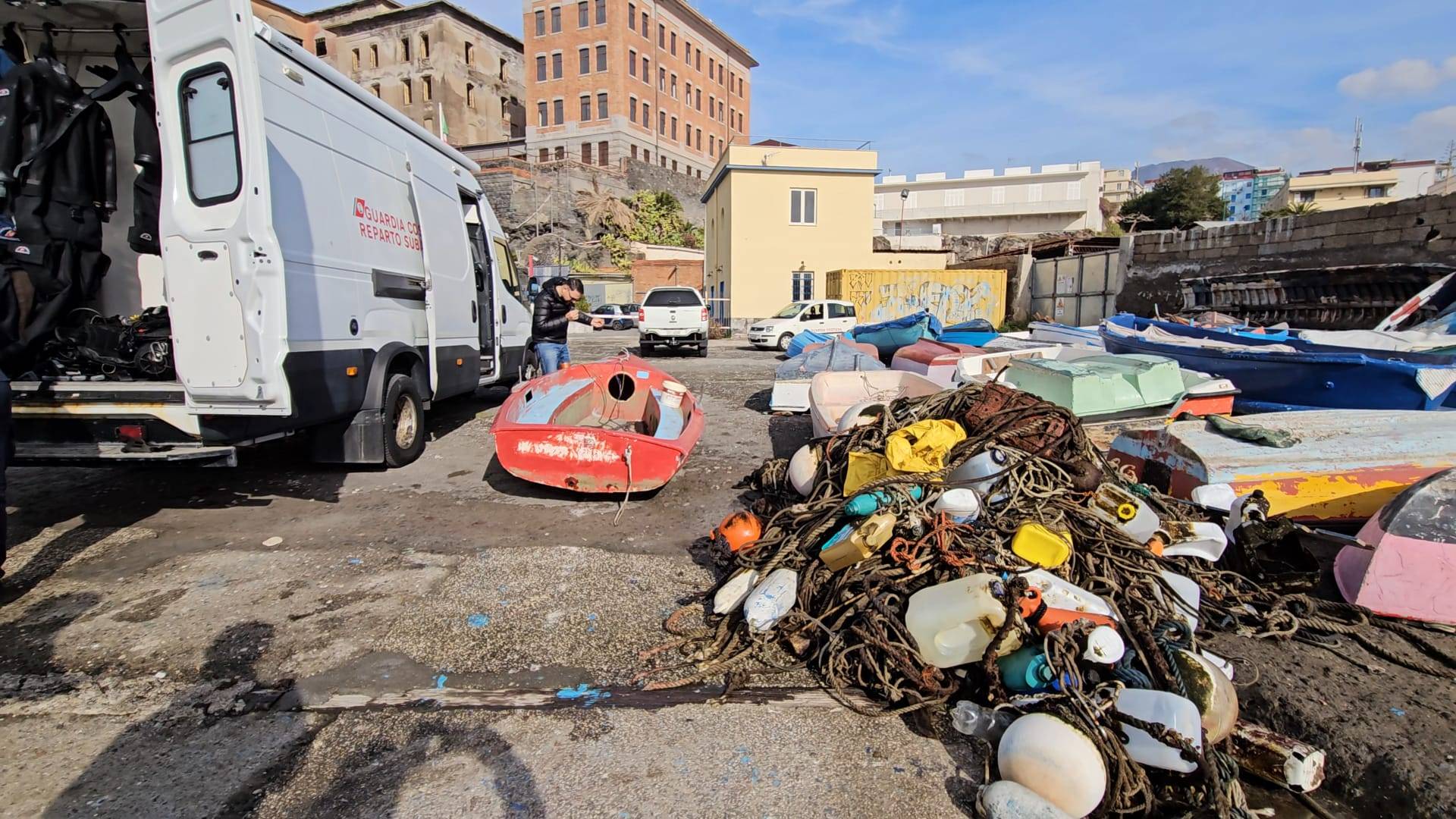 del porto di Torre del Greco, di rifiuti di varia natura, tra cui due barchini sommersi, un