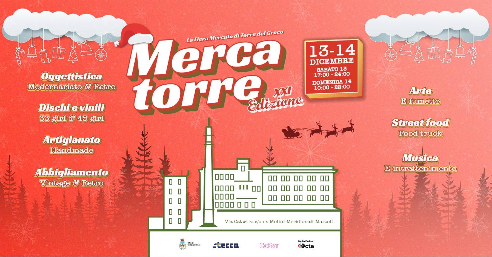 L’appuntamento è per Sabato 13 Dicembre (dalle 17:00 alle 24:00) e domenica 14 Dicembre (dalle 10:00 alle 22:00), nella suggestiva cornice degli Ex Molini Meridionali Marzoli di Torre del Greco, dove si rinnova l’incontro tra memoria, creatività e identità cittadina.