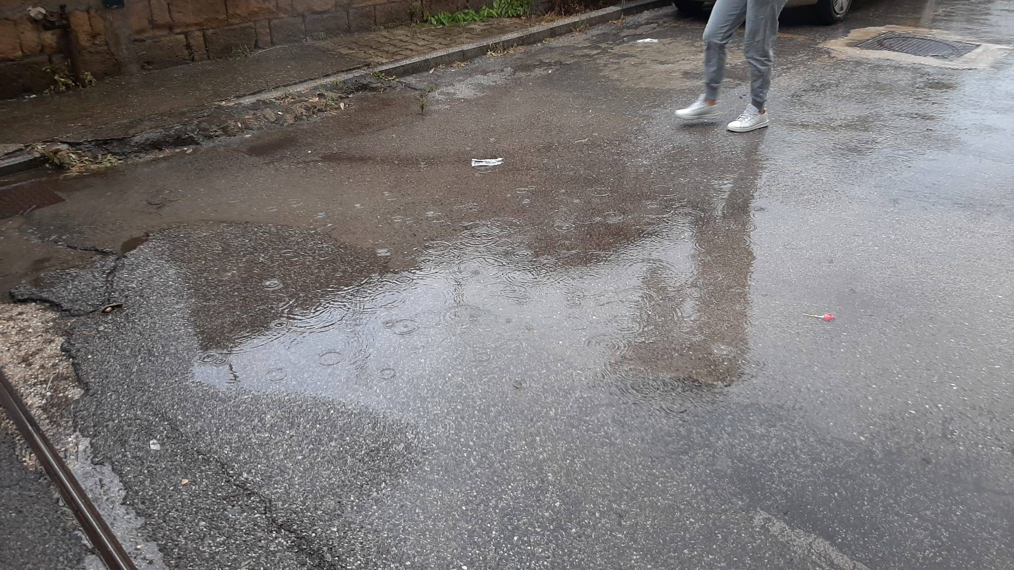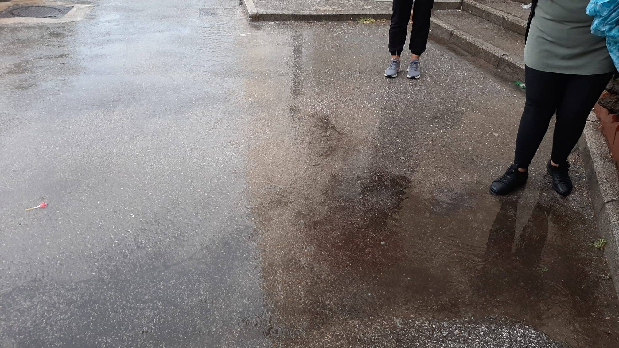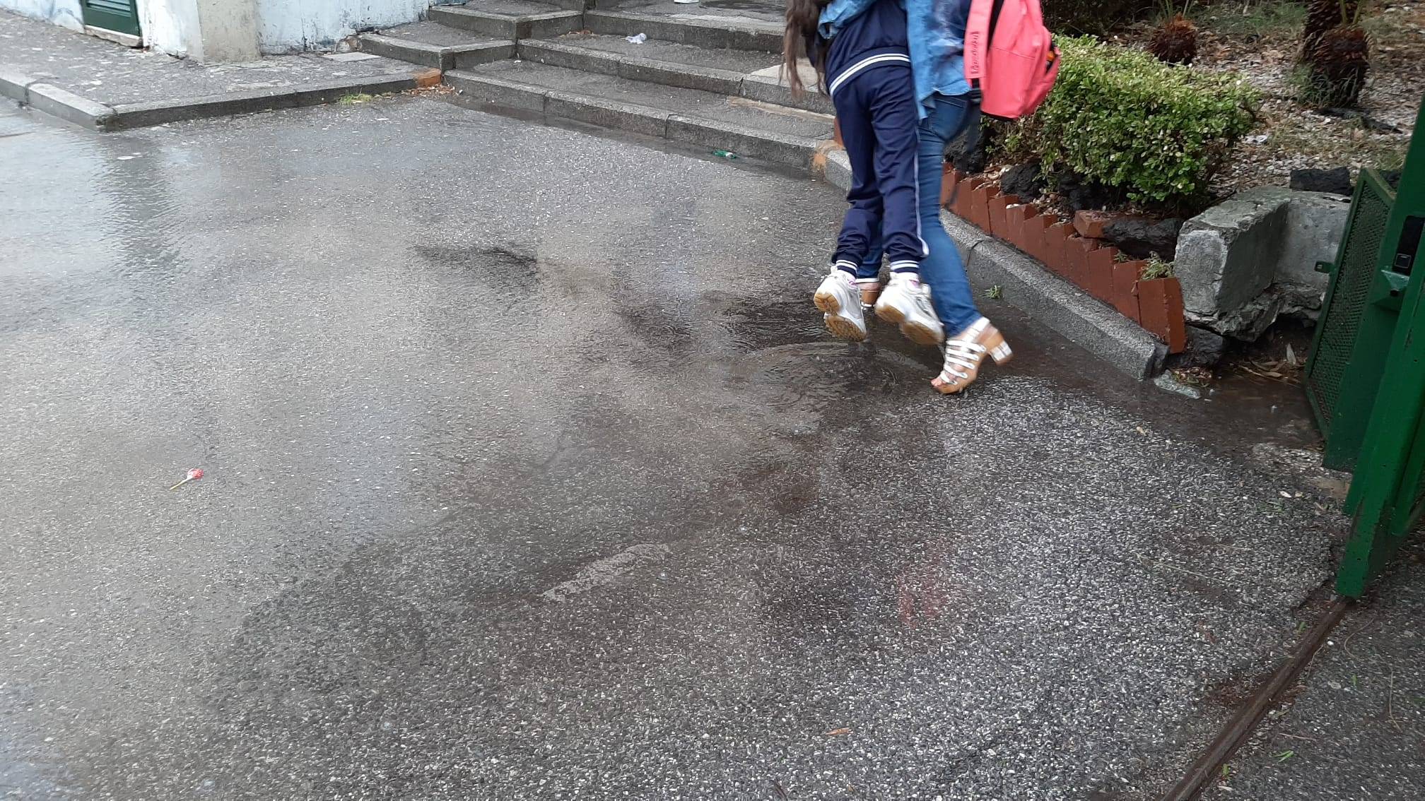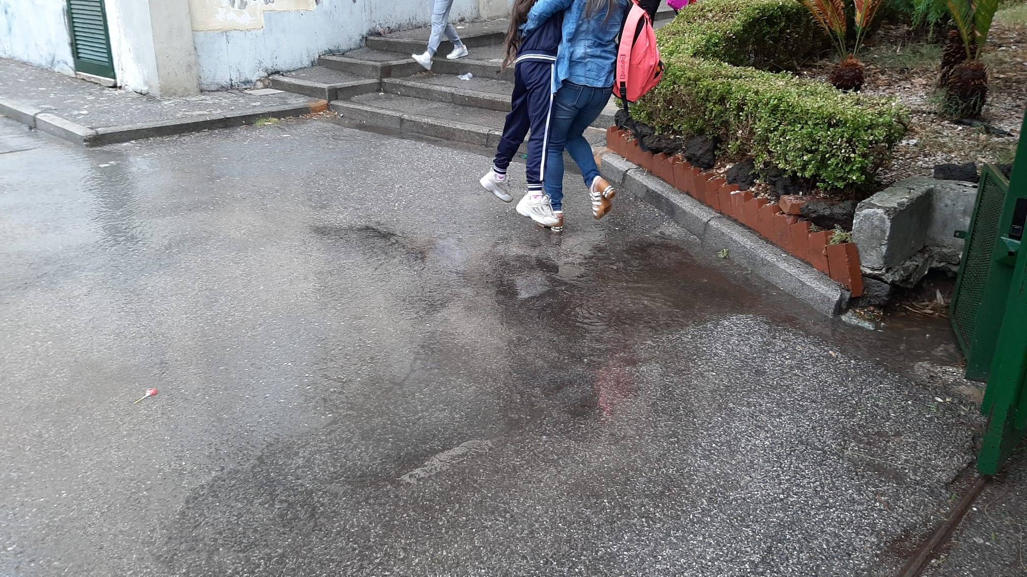 Ogni volta che piove, l’ingresso della scuola puntualmente si allaga ed è inpraticabile per i bambini.