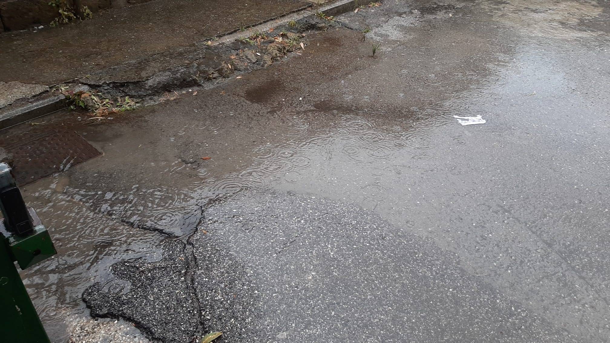 Ogni volta che piove, l’ingresso della scuola puntualmente si allaga ed è inpraticabile per i bambini.
