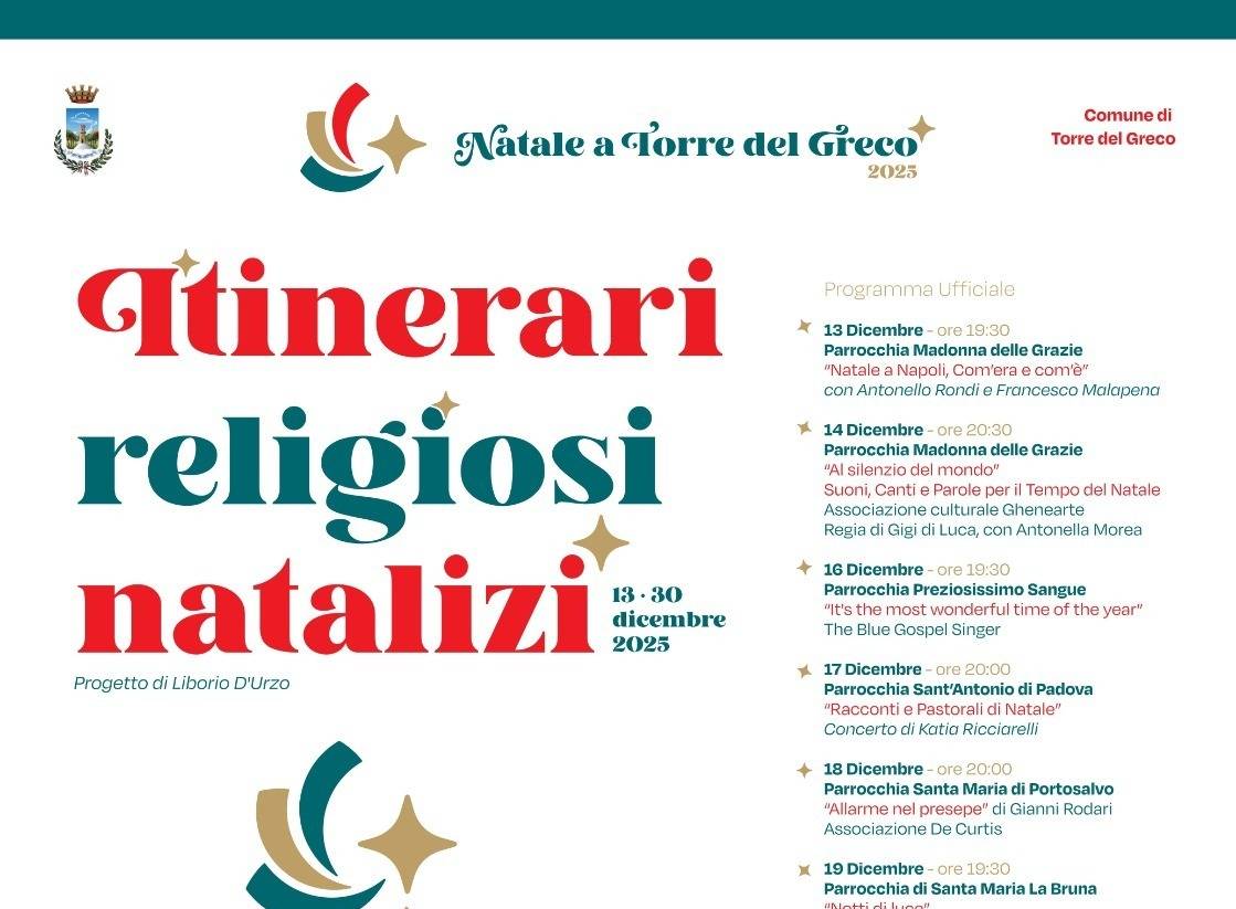Dalla melodie sempreverdi di Antonello Rondi alla voce del soprano più famoso d’Italia, Katia Ricciarelli. Passando per la musica gospel, il talento artistico di Antonella Morea, le percussioni di Tony Esposito e l’estro di Giovanni Mauriello. Ma soprattutto dodici momenti a tema natalizio all’interno dei luoghi per eccellenza delle feste di fine anno: le chiese. È ricco il programma di eventi di “Itinerari religiosi natalizi”, la rassegna promossa dall’amministrazione comunale di Torre del Greco guidata dal sindaco Luigi Mennella e curata dall’ufficio Cultura dell’ente (dirigente Gaetano Camarda), il cui progetto è affidato a Liborio D’Urzo.