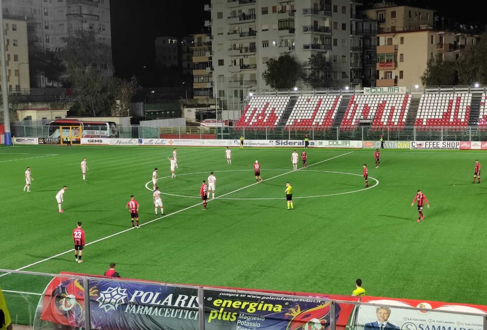 I pugliesi passano in vantaggio con l’eurogol di Curcio al 23′. La risposta dei corallini arriva dopo 6′, con Loreto.