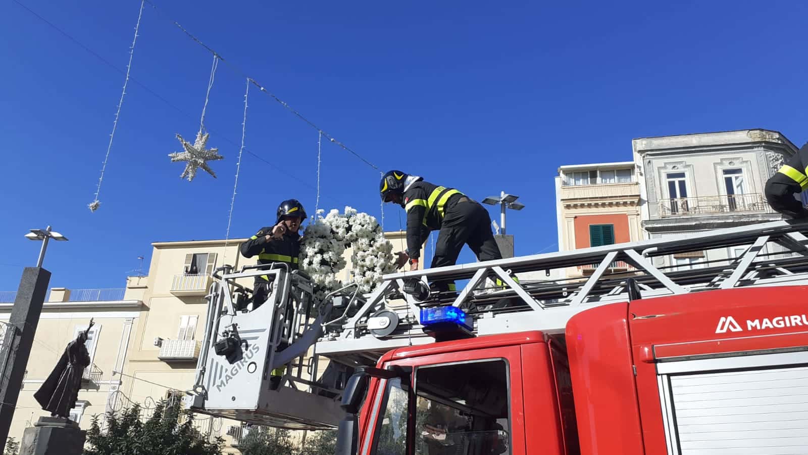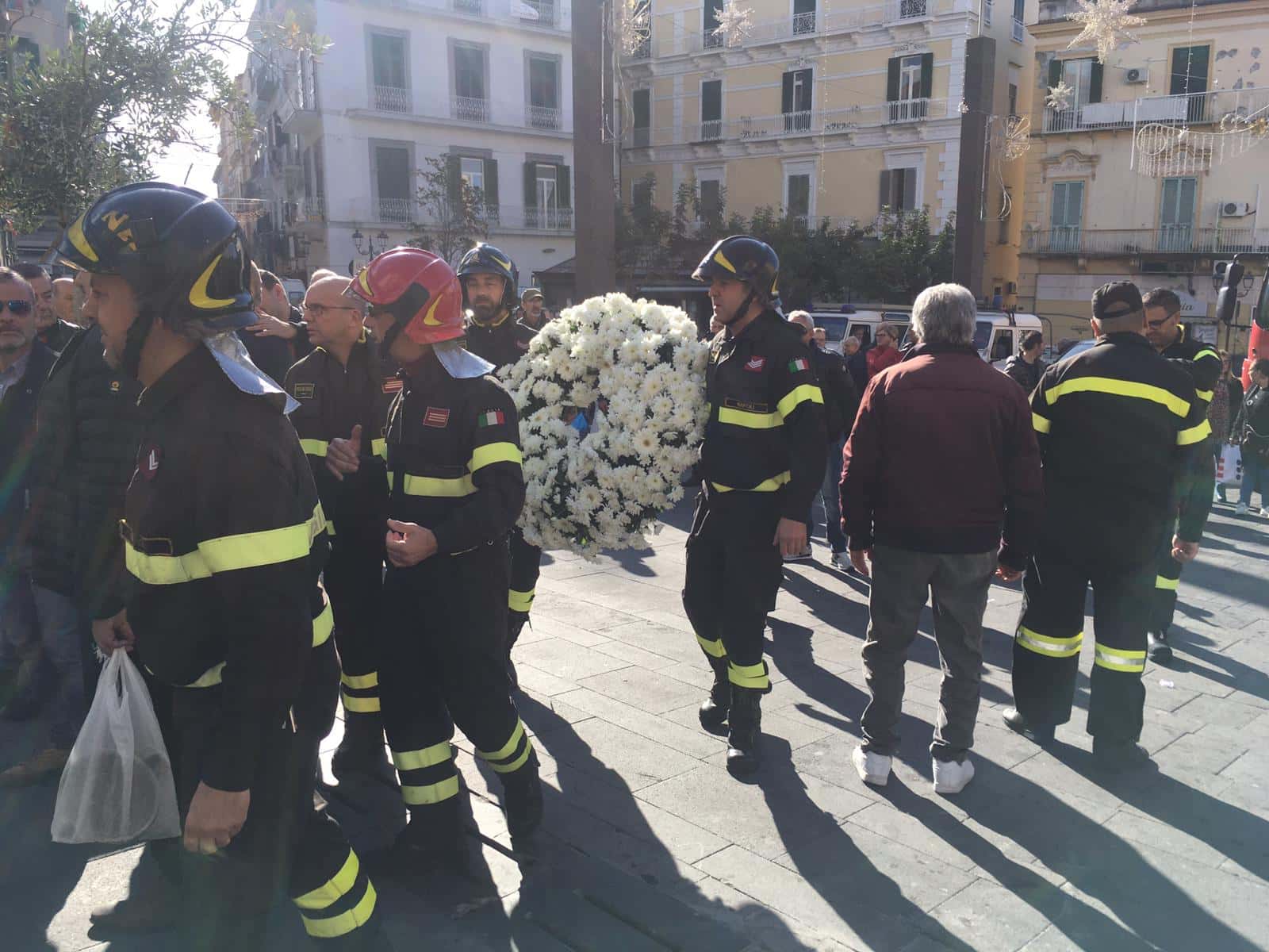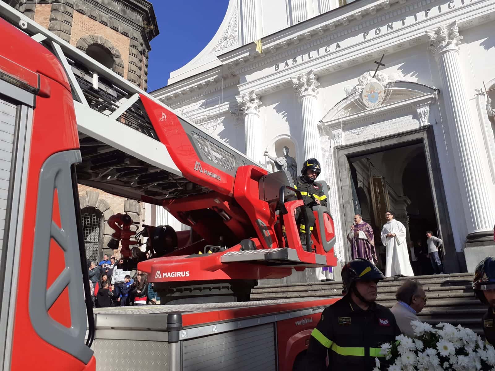 I vigili del fuoco di Torre del Greco hanno reso omaggio a San Vincenzo Romano questa mattina in piazza Santa Croce. Con un automezzo hanno posto una corona di fiori sulla cima della Basilica alla presenza di centinaia di fedeli.