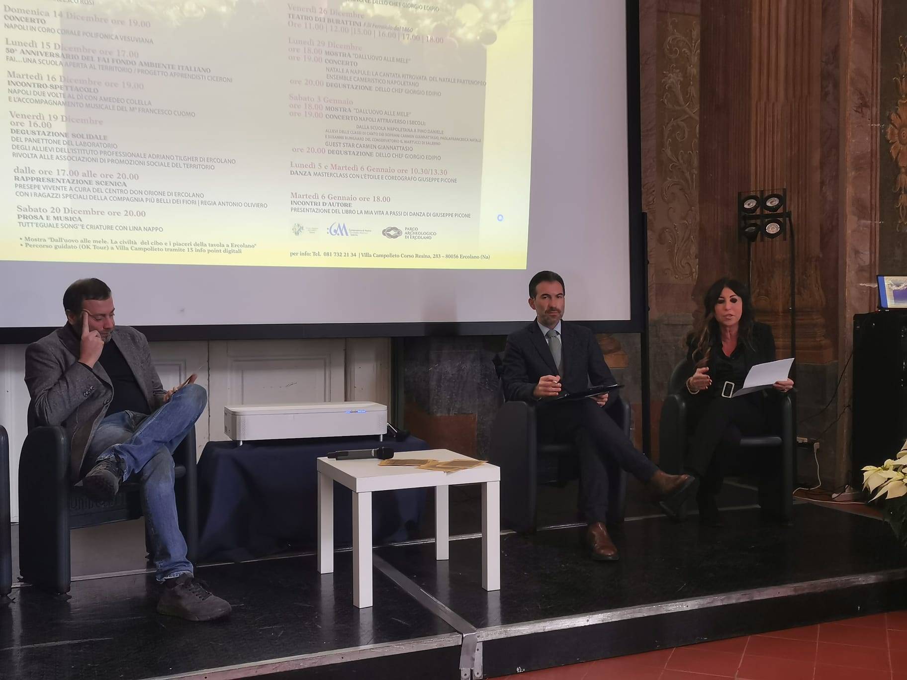 Sullo sfondo, l’incantevole cornice architettonica di Villa Campolieto ad Ercolano, autentico gioiello del “Miglio d’oro”, lo storico tratto della costa vesuviana che da San Giorgio a Cremano fino a Torre Annunziata, annovera ben 122 dimore, simbolo dello splendore e della ricchezza degli antichi fasti settecenteschi.