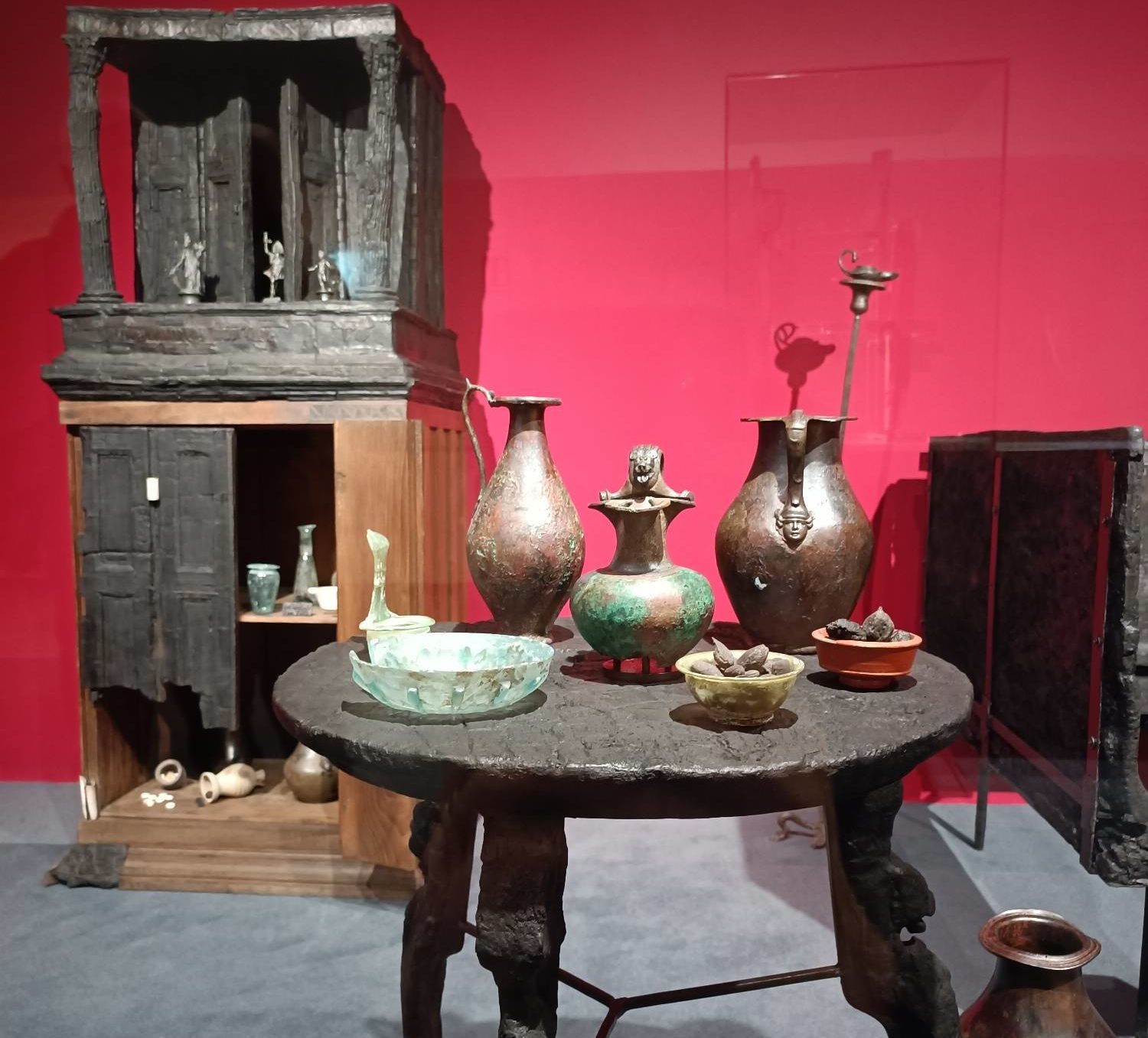 La stagione di visite ha visto un momento particolarmente significativo con l’arrivo, per la prima volta dopo quasi novant’anni, della credenza proveniente dall’appartamento V,18 sul Decumano Massimo. Questo straordinario mobile ligneo carbonizzato, rinvenuto nel 1937 accanto alla Casa del Bicentenario con tutto il suo contenuto, è entrato a far parte del nuovo spazio espositivo dedicato ai legni antichi all’interno dell’Antiquarium. Al suo interno furono ritrovati coppe, bicchieri, brocche e pentole: oggetti che raccontano con rara immediatezza la vita domestica degli abitanti dell’antica Ercolano.