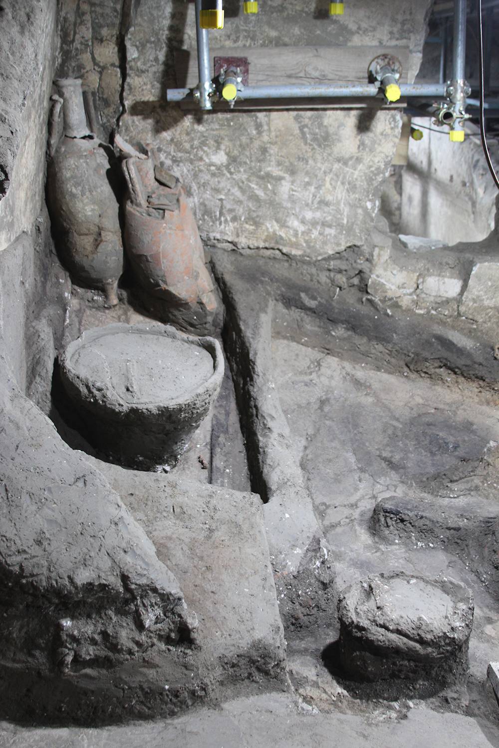 La conservazione al primo piano, in una zona dove le indagini stratigrafiche continueranno nei prossimi mesi, verosimilmente aveva una doppia finalità: in primo luogo, gli alimenti erano più protetti da parassiti come i roditori. Sin dal 2023, sono stati trovati resti di diversi esemplari di topi e ratti negli alloggi servili del pianterreno, che non disponevano di un vero e proprio pavimento ma solo di un battuto di terra. Inoltre, è probabile che comunque fosse previsto un razionamento e dunque un controllo di quanto ciascuno poteva prendere giornalmente dalla dispensa, anche in base alle mansioni, all’età e al sesso. Tale controllo potrebbe essere risultato più facile conservando i viveri al primo piano, dove potrebbero aver alloggiato i servi più fidati del padrone di casa, che esercitavano un controllo sugli altri, secondo un articolato sistema ricostruito in precedenza in base all’analisi del quartiere servile (https://pompeiisites.org/e-journal-degli-scavi-di-pompei/of-mice-and-men/).