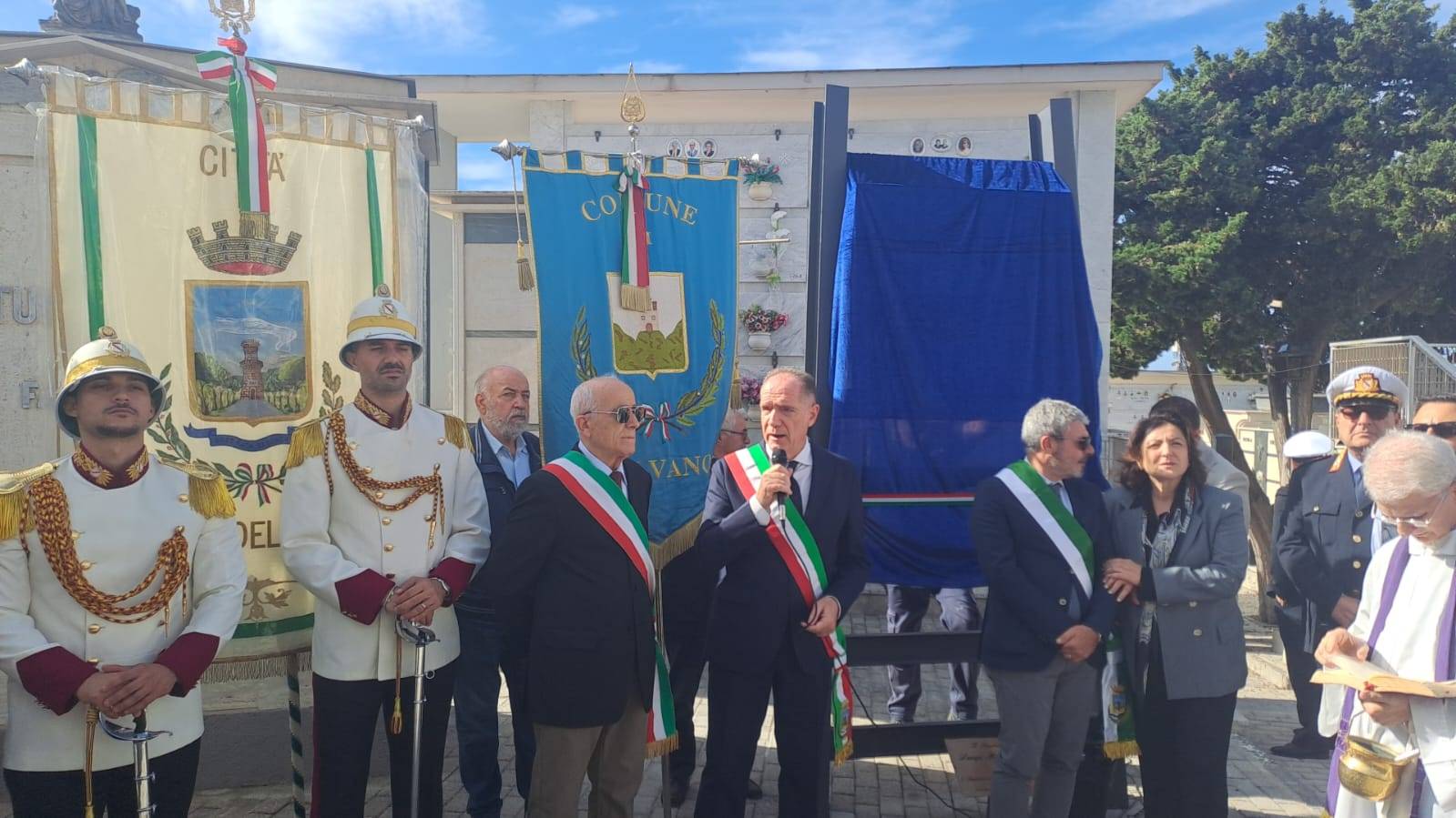 Insieme al primo cittadino torrese, alla cerimonia di scoprimento hanno partecipato il sindaco di Balvano (Potenza), Ezio Di Carlo; il vicesindaco Michele Polese; la vicepresidente del consiglio regionale Loredana Raia; il presidente del consiglio comunale, Gaetano Frulio; il consigliere delegato al cimitero, Antonio D’Ambrosio; un’ampia rappresentanza delle forze dell’ordine cittadine; i familiari della vittime. A benedire il monumento è stato il cappellano del cimitero, don Ciro Scognamiglio. A margine della cerimonia è stato ricordato come la struttura in ferro sulla quale poggia la targa sulla quale è segnata la data di apposizione del monumento (posta nella parte bassa della struttura) è stata gentilmente omaggiata dai fratelli Versante di via Fontana. “Come amministrazione comunale – afferma il consigliere comunale con delega al cimitero, Antonio D’Ambrosio – ci siamo immediatamente attivati appena è giunta alla nostra attenzione la richiesta di realizzare il monumento. Già nel corso delle celebrazioni del 2 novembre, durante la consueta processione in programma al cimitero, è prevista anche una sosta dinanzi al nuovo monumento, con un momento di preghiera in memoria delle vittime di Balvano. Mi preme infine ringraziare il dirigente Antonio Sarnello, il direttore Lorenzo Palomba e tutti i dipendenti del settore e gli operai impegnati al cimitero per il costante e infaticabile lavoro svolto quotidianamente”.