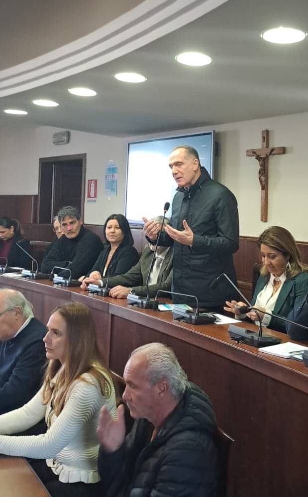 Mercoledì sarà la volta degli uomini: la gara Napoli-Salernitana alle 9 aprirà la competizione under 17, poi la Campania Puteolana (la società del presidente Gennaro Esposito) giocherà alle 10 e alle 11 rispettivamente con la perdente e la vincente della gara inaugurale. Ad aprire i lavori della conferenza, è stato il sindaco Luigi Mennella: “Siamo felici di ospitare anche quest’anno una manifestazione che, accanto ai messaggi sportivi, ci permette di ricordare le vittime del ponte Morandi e ci fa riabbracciare Gennaro Esposito, col quale già ci eravamo sentiti subito dopo gli spiacevoli episodi dello scorso primo novembre”. Insieme ai saluti del primo cittadino, quelli del presidente del consiglio comunale, Gaetano Frulio; dalla consigliera comunale delegata allo sport, Valentina Ascione; di Rosa Esposito, sorella di Gerardo, una delle vittime del ponte Morandi (presenti anche il padre Franco Esposito e la sorella di Antonio Stanzione, Erminia); della consigliera regionale Loredana Raia; per gli organizzatori dell’associazione Monsignor Michele Sasso, Giuseppe Sasso, Monica Padulano ed Alessandro Coppola. Diverse le domande degli alunni presenti tra il pubblico, rivolte in particolare proprio a Gennaro Esposito, che così ha potuto raccontare i suoi trascorsi calcistici (in particolare quelli come portiere della Turris negli anni ‘90 e 2000) e descrivere l’episodio che l’ha visto sfortunato protagonista lo scorso novembre al Liguori.