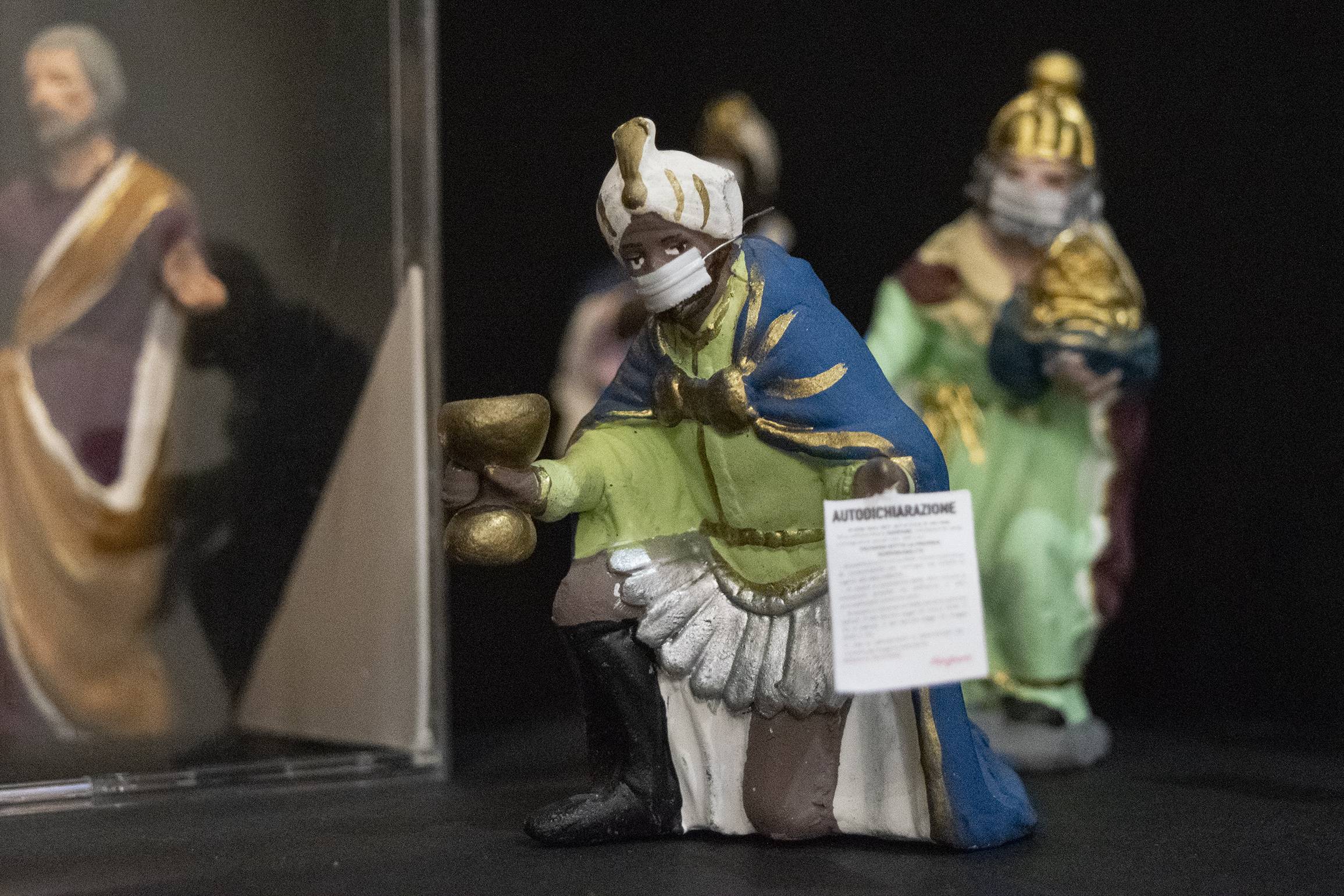 “Anche i pastori nel 2020 dovrebbero portare la mascherina”. Un po’ per tradizione e un po’ per gioco i napoletani Carolina Ciuccio, artista, e Giuseppe Mattiucci, avvocato, hanno realizzato nella loro casa/studio in via Tribunali un presepe ai tempi del Covid-19. Una scenografia minimale, quasi teatrale, fa da sfondo neutro per una natività contemporanea. Nel presepe, insieme alle tradizionali “figurelle” del ‘700 napoletano, sono presenti alcuni elementi del nostro quotidiano come il totem per l’Amuchina, il Napisan per disinfettare, i pacchi spediti da Amazon e Zalando al posto dei tradizionali doni, le pizze a domicilio con Just Eat e Uber Eats, l’autodichiarazione che i Re Magi esibiscono per giustificare la loro presenza fuori regione, il pannello in plexiglass a protezione della natività con tanto di cartelli di obbligo di distanziamento sociale e uso della mascherina, indossata dai pastori sul viso. Ma anche, come siamo abituati a vedere in giro, sotto mento o gomito. “Il nostro presepe ai tempi del Coronavirus non vuole essere né blasfemo né catastrofico, ma semplicemente rappresentare un simbolo della tradizione in maniera attuale – racconta la coppia -. Lo abbiamo pensato e costruito calandolo nella realtà che viviamo, piena di contraddizioni e novità con le quali ogni giorno – che ci piaccia o no – dobbiamo rapportarci”.