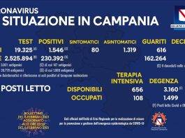 Bollettino Covid in Campania: oggi 1.546 positivi su 19.325 tamponi