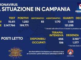 Covid in Campania: 1.253 i positivi del giorno, 83 sintomatici