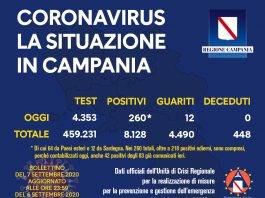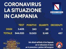 Bollettino Covid-19 in Campania: oggi 243 positivi su 3.405