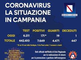 Bollettino Coronavirus in Campania: oggi 171 positivi su 6.211 tamponi