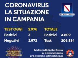 Coronavirus: oggi soltanto 3 nuovi positivi in Campania, mai così pochi