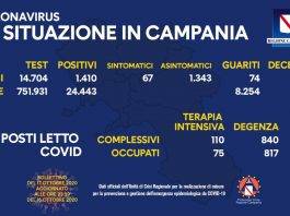 Bollettino Covid in Campania: oggi 1.410 positivi, 67 sintomatici