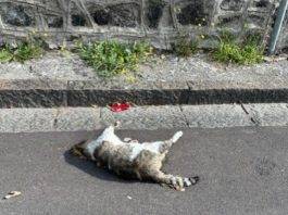 Torre del Greco: gatto morto riverso da giorni su viale Ungheria
