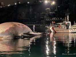 Carcassa balenottera trasportata nel porto di Napoli