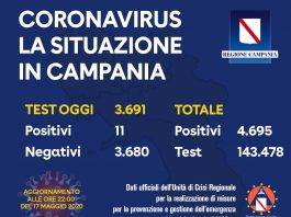 Aggiornamento coronavirus in Campania: 11 positivi su 3.691 tamponi