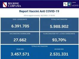 Vaccinazioni Campania: 2.531.331 hanno ricevuto la seconda dose