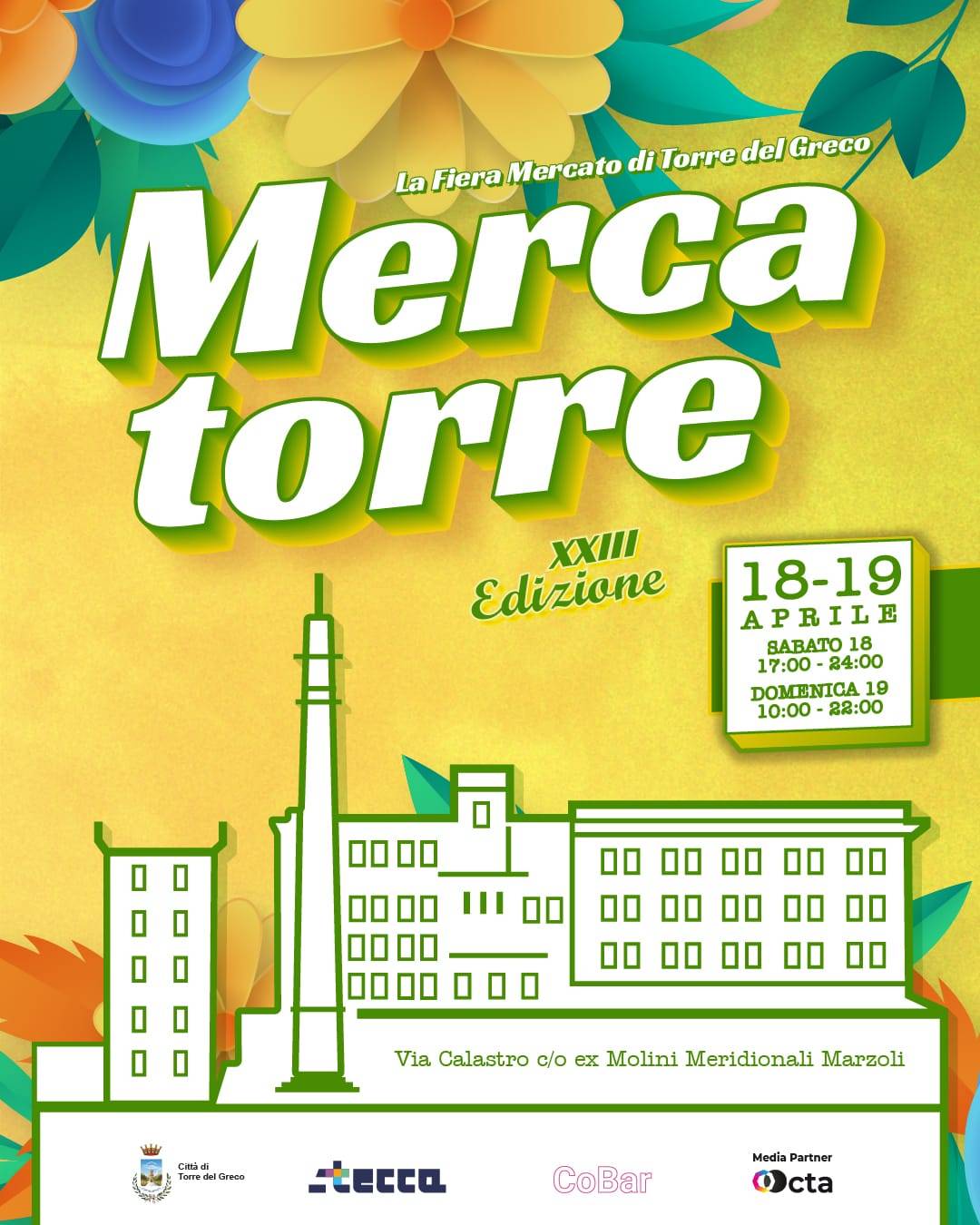 L’appuntamento è per sabato 18 aprile (ore 17:00–24:00) e domenica 19 aprile (ore 10:00–22:00), nella suggestiva cornice degli Ex Molini Meridionali Marzoli di Torre del Greco, dove si rinnova l’incontro tra memoria, creatività e identità cittadina.
