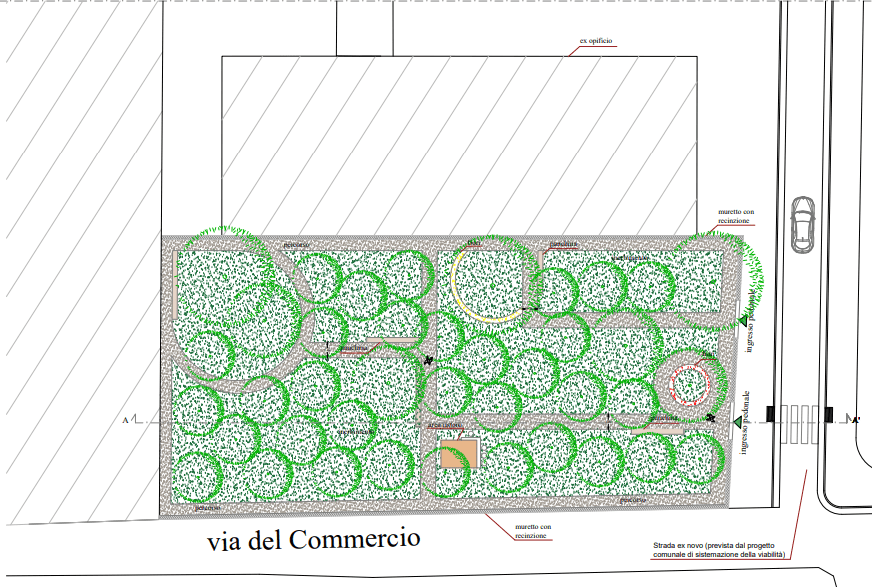 Il secondo progetto è relativo al bene confiscato di via Commercio. Il progetto, anche in questo caso in collaborazione con Agrorinasce, prevede l’abbattimento totale del rudere che si trova al centro dell’area confiscata e la realizzazione di parcheggi e spazi verdi per il quartiere.