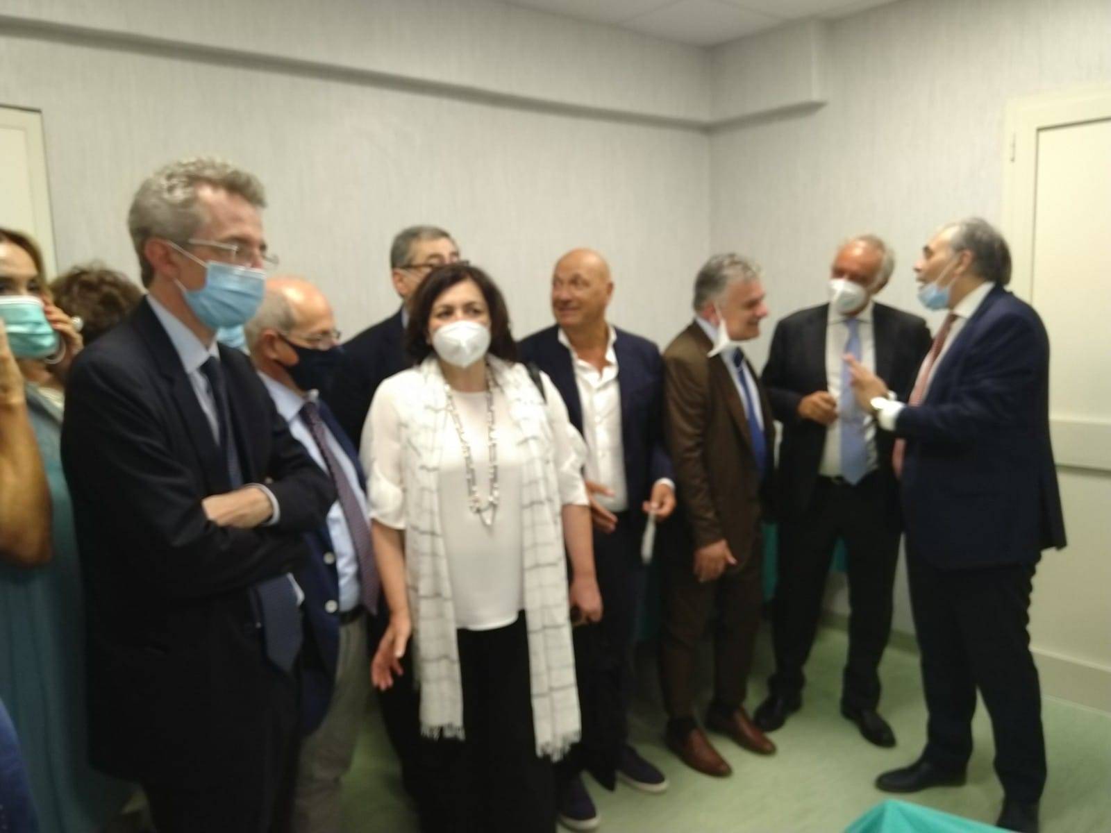 Presenti il direttore generale Asl Napoli 3 Sud Gennaro Sosto, il direttore sanitario Asl Napoli 3 Sud Gaetano D’Onofrio, il direttore scientifico del centro Pietro di Ciccio, il ministro della ricerca scientifica Gaetano Manfredi.