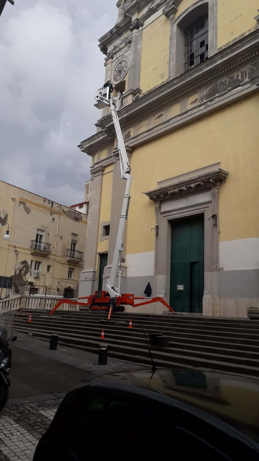 È stata messa in sicurezza la facciata della parrocchia dello Spirito Santo a Torre Annunziata, il cui ingresso nei giorni scorsi era stato interdetto per rischio crolli.