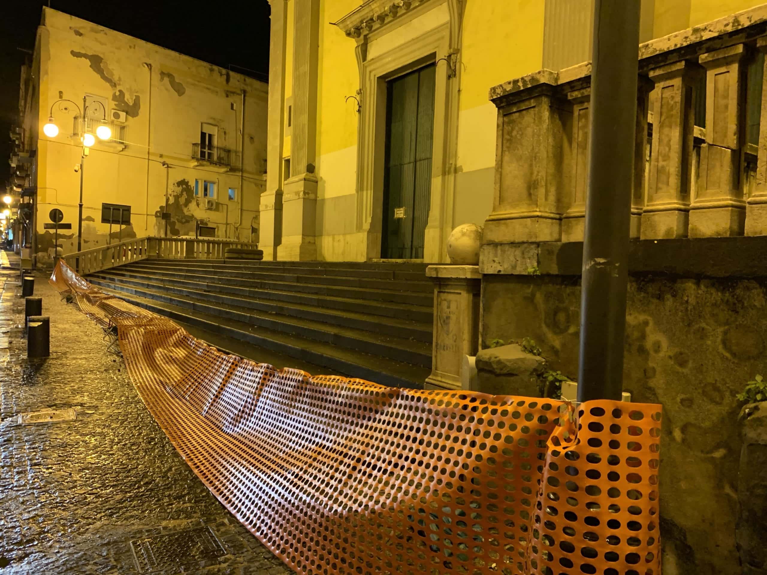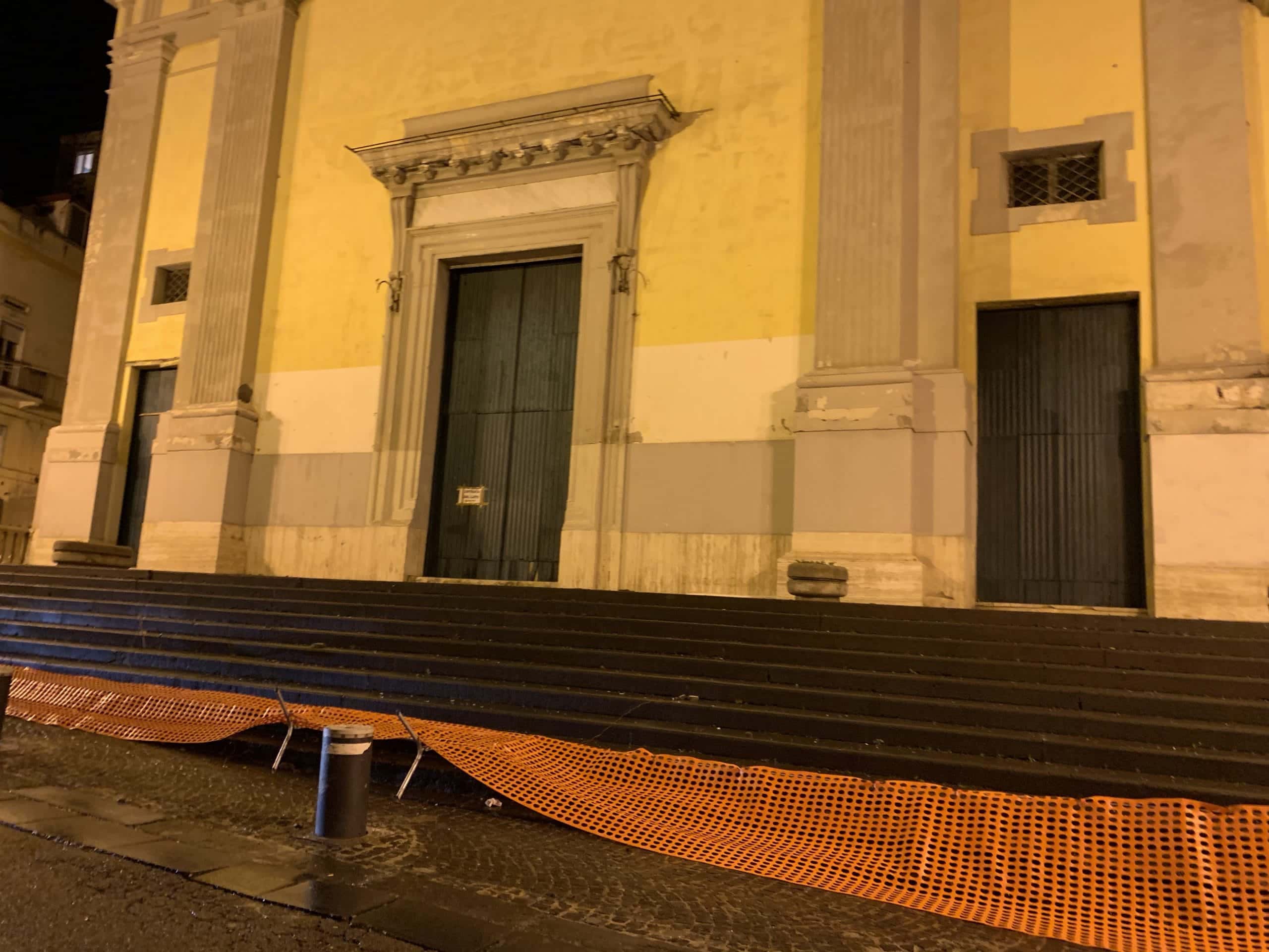 Nei giorni scorsi l’ingresso è tornato agibile. Sono state infatti installate alcune reti di contenimento grazie al contributo del Cardinale di Napoli, Crescenzio Sepe, che, interpellato dal parroco don Pasquale Paduano, si è fatto personalmente carico delle spese per mettere in sicurezza la facciata, pari a poco meno di 4mila euro. La prossima settimana saranno posizionate ulteriori reti.